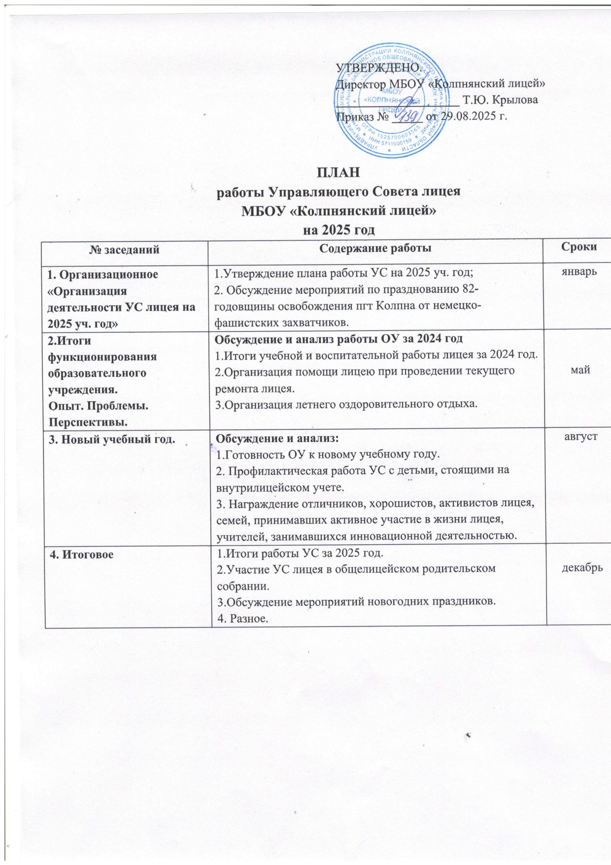 Выписка из Протокола заседания Управляющего совета МБОУ «Колпнянский лицей»